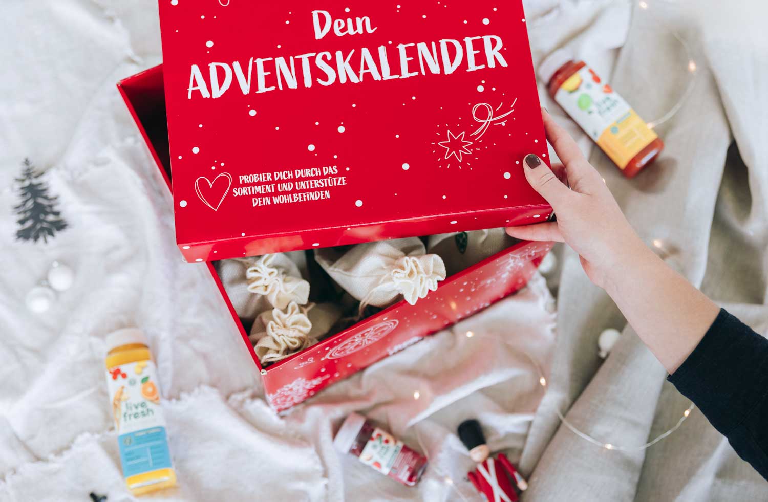 Freue Dich auf eine Vorweihnachtszeit voller gesunder Überraschungen mit dem LiveFresh Adventskalender! Hinter jedem Türchen erwartet Dich täglich ein neues Geschmackserlebnis. Zusätzlich zu unseren beliebten Favoriten hält der Adventskalender auch einige Überraschungen bereit, die Dich wohltuend durch die kalte Jahreszeit begleiten.